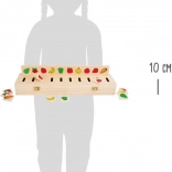 Opdag en sjov træbaseret sorteringsboks, der hjælper børn med at lære og lege samtidig. Den indeholder 5 indsætningsplader og 50 kvadrater med symboler, så børn kan øve farvegenkendelse, former, dyr, frugt, tøj og tal. Den robuste trækonstruktion og et sikkert låg med 2 låse sikrer nem opbevaring af alle dele og orden efter legen.