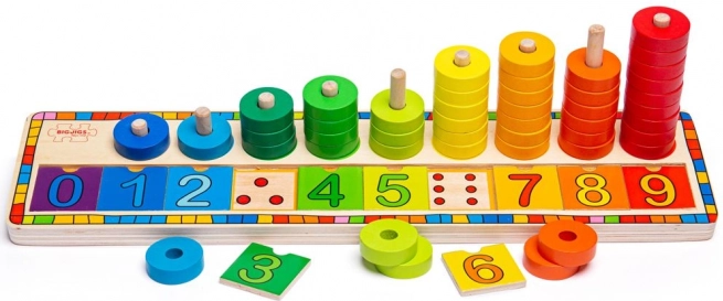 Talsrækkerne 0–9 og stabelringe hjælper børn med naturligt at forstå mængde, rækkefølge og grundlæggende regning.