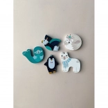 Dette sensoriske træpuslespil med polare dyr (pingvin, isbjørn, sæl, hval og lille fugl) giver børn glæden ved at udforske. Når de massive brikker tages ud, mærker børnene underlag med forskellige teksturer, som styrker sansningen af overflader og lærer dem at skelne former og materialer. Den solide trækonstruktion er holdbar og let at gribe – selv for de mindste hænder.
