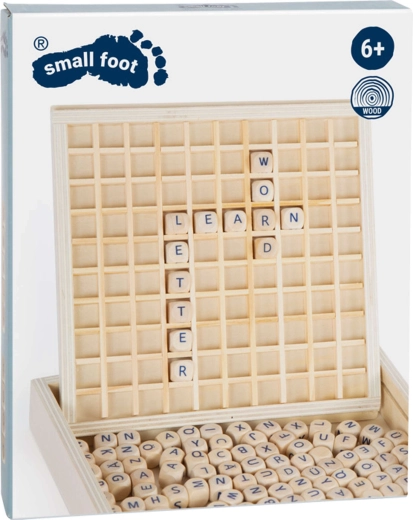 Et sjovt og lærerigt ordspil af 100% FSC-certificeret træ, der hjælper børn med at udvide deres ordforråd og træne stavning. Den robuste spilleplade med en gitterstruktur til stabil placering af bogstaver, en praktisk lukbar boks til opbevaring af alle brikker og de kompakte mål gør spillet ideelt til hjemmet og på farten.