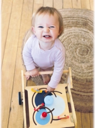 Tag på opdagelse med trægåvognen formet som en hval. Denne gåvogn hjælper ikke kun børn med de første skridt, men giver også forskellige interaktive legetøj til at fremme motoriske færdigheder.