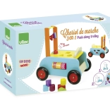 Den stilfulde trævogn fra VILAC kombinerer funktionerne gåvogn, løbecykel og puttekasse. Takket være den stabile konstruktion, de store gummihjul og det komfortable sæde med lille ryglæn er den ideel til de første skridt og kørsel. Farverige drejeelementer, formindsætning og en horn med lydeffekter udvikler børns motorik, sanser og rumlige forestillingsevne.