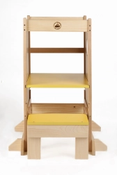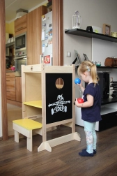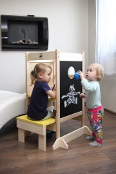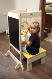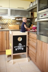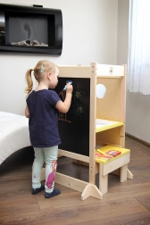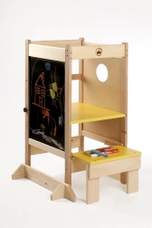 Takket være det gennemtænkte design kan tårnet nemt forvandles til et lille bord med stol og også til en kridttavle. To højdepositioner på ståfladen tilpasses barnets vækst og giver en komfortabel og sikker brug.