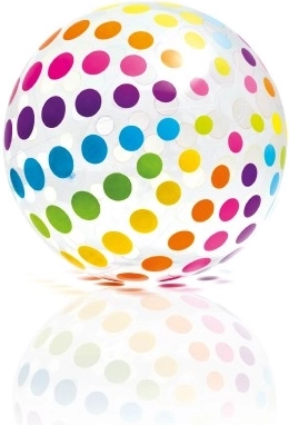 En kæmpe oppustelig strandbold fra INTEX med en diameter på 107 cm, der giver masser af sjov i vandet og på stranden. Den transparente bold med farvede prikker/striber fanger øjet med det samme, og det holdbare PVC-vinyl sikrer lang levetid.
