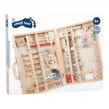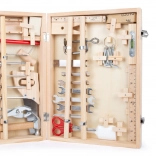 I kufferten finder du alt, hvad der behøves til små hjemmeprojekter og rollelege som håndværker: nøgler, skruetrækkere, sav, saks, mejsel, tømrerblyant, unbrakonøgle, hammer og andre tilbehør. Det 48-delte sæt understøtter finmotorik, koncentration og kreativitet.