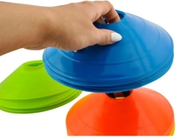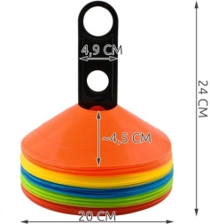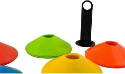 Sættet med lavprofils træningskegler er ideelt til fodbold, atletik, fitness og idræt i skolen. De fem mættede farver (gul, orange, rød, grøn, blå) gør det muligt tydeligt at afmærke zoner, baner og øvelsesstationer, hvilket øger sikkerheden og overblikket under træning.