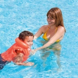 Sikker og komfortabel svømmevest til børn i alderen 3–6 år og vægt 18–30 kg. Har et trekammer-system, tilbageslagsventiler og to justerbare spænder for sikker fastgørelse. Den klare orange farve øger synligheden i vandet, mens den bløde krave giver komfort og støtte under svømmeundervisning.