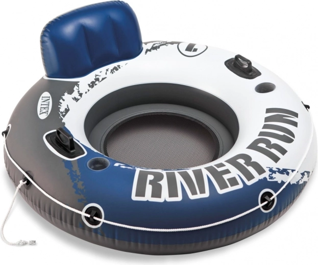Vandsæde med netbund. Stabile håndtag. Indbygget ryglæn. To kopholdere. To luftkamre. Reparationssæt medfølger. Omtrentlig størrelse 135 cm.