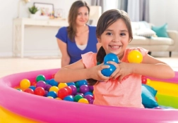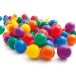 Med disse farverige bolde med en diameter på 6,5 cm kan du forvandle ethvert legeområde til en sjov zone fyldt med glæde og latter. Plastikboldene er lette og sikre for børn, ideelle til udvikling af sensoriske evner og fysisk aktivitet.