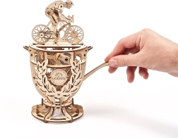 Den mekaniske model UGEARS Cyklist kombinerer traditionelt træ og smart mekanik. Byggesættet i form af et trofæ med en cyklist byder på en glat geargang, håndbetjent løftestang og mulighed for finjustering af svinghjul ved hjælp af mønter eller jetoner. Det er et fremragende valg for alle, der elsker konstruktionsudfordringer, design og teknik.