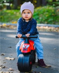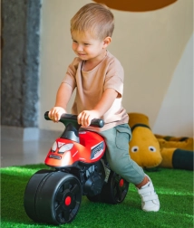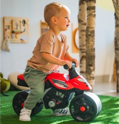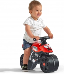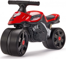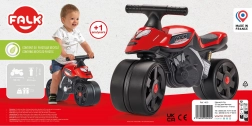 Den røde FALK Racing motorcykel-løbecykel er et fremragende valg til de første selvstændige køreture. Takket være de brede hjul er den meget stabil på forskellige underlag, og det drejelige forhjul gør manøvrering let, selv på mindre arealer. Den høje plastkvalitet tåler daglig leg både inde og ude.