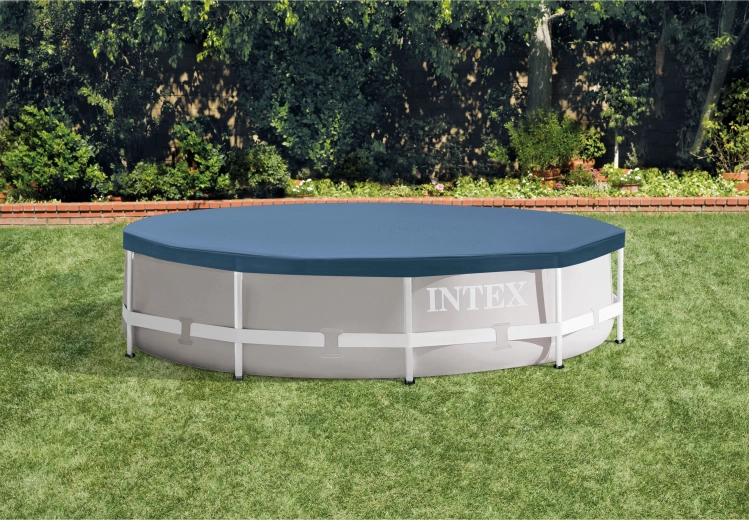 INTEX overtræk 305 cm i holdbar vinyl beskytter vandet mod snavs, reducerer fordampning og er nemt at montere med snøre og 25 cm overlap.