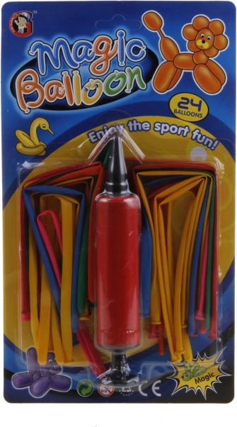 - Indeholder 24 balloner i forskellige farver og en praktisk pumpe.