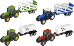 Vælg en traktor i grøn, blå eller rød, og tilslut den trailer du foretrækker – et alsidigt lad eller en stilfuld mælketankvogn (afhænger af tilgængelighed).