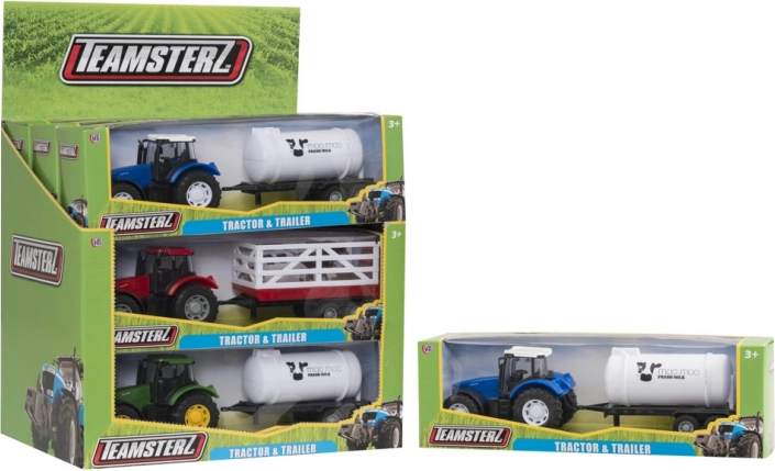 Tag på marken med den detaljerede Teamsterz-traktor i skala 1:32. Takket være den aftagelige trailer kan børn afprøve forskellige scenarier – fra transport af last på ladet til udbringning af mælk i tankvognen. Realistiske proportioner understøtter fantasien og selvstændig leg.