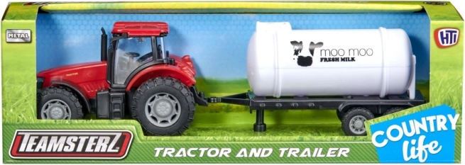 Den detaljerede udførelse af tankvognstraileren med trykket Moo Moo Fresh Milk understreger den landlige stemning og inspirerer til fantasifuld leg.