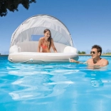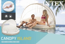 Den oppustelige ø fra INTEX giver det perfekte sted til afslapning ved vandet. Den aftagelige og justerbare skærm sørger for behagelig skygge, når solen bager, og kan let fjernes, når du vil sole dig. Den brede flade og formstøbte ryglæn giver komfort til mange timers afslapning.
