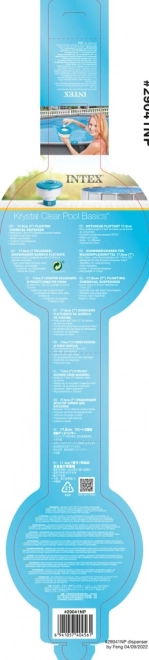 Flydende dispenser fra Intex flyder frit på vandoverfladen, og det store design sikrer synlighed og sikkerhed. Den er lavet af holdbar polypropylen og har et sikkert låg, der kan rumme klor- eller bromtabletter med en maksimal størrelse på 7,5 cm.