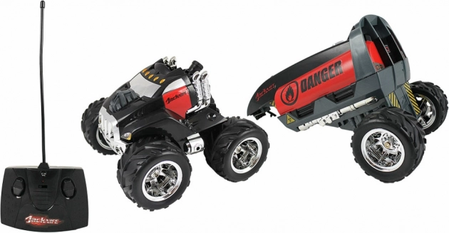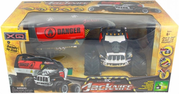 Oplev RC-bil Jack Knife udstyret med avanceret fjernbetjening. Dette køretøj giver unikke lege-muligheder med akrobatiske tricks og 360°-rotationer. Nyd timevis af underholdning med køretøjet, som har en længde på 42 cm.