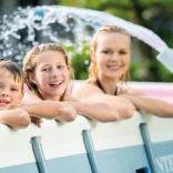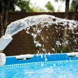 Monteringen klarer du på et minut: fastgør fontænen til poolvæggen uden boring og uden værktøj. Universel montering og den medfølgende adapter gør det nemt at tilslutte til almindelige slanger på 32/38 mm og til filtre med en gennemstrømning på 3.785–12.112 l/t. Produktet opfylder europæiske standarder for sikkerhed.
