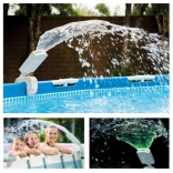 Nyd aftenbad med en fortryllende lyseffekt. INTEX-fontænen skaber en dekorativ vandstråle med LED-baggrundslys i fire farver (hvid, rød, blå, grøn), forbedrer cirkulation og iltning af vandet og øger dermed effektiviteten af poolkemien. Takket være den hydroelektriske generator behøver den ingen ekstern strøm – lyset tændes automatisk ved vandgennemstrømning.