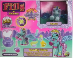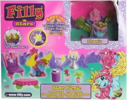 Filly Stars-sættet inviterer børn ind i en verden fuld af fantasi. Hesten med magisk horn, glitrende vinger og krone med krystal inspirerer til historier om venskab, fejringer og teselskaber. Takket være den farverige palet af tilbehør kan børn let skabe deres egne scener og udvikle både forestillingsevne og finmotorik.