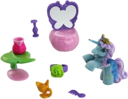 Små stole, toiletbord, gaveæsker og en nuttet enhjørning indbyder til historiefortælling og finmotorisk træning ved håndtering af tilbehøret.