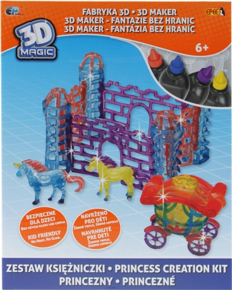 Med 3D MagiDeluxe skaber du nemt originale 3D-modeller – fra slotte til kareter og magiske figurer. Brug blot 3D Magic gel, vælg en form eller skabelon, og lad værket hærde under UV-lys. Resultatet er solidt, farverigt og klar til leg eller udstilling.