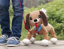 Giv børnene en kær lille hvalp – hunden Boggie, som gynger og hopper sjovt, når den går, næsten som en rigtig. Tag den blot i snoren og gå en tur. Dens klokke ringer sødt under bevægelse, de ru poter giver stabilitet på forskellige underlag, og der kræves ingen batterier. Den perfekte legetøj til de mindste fra 2 år.