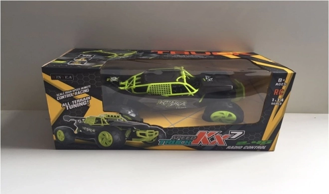 Denne terrængående RC-buggy er designet til fart, manøvredygtighed og sjov. Med skala 1:14 opnås en ideel balance mellem stabilitet og smidighed, mens 2,4 GHz teknologien sikrer pålidelig rækkevidde uden interferens. Det realistiske look, de kraftige hjul og de synlige fjedre understreger dens racerkarakter.