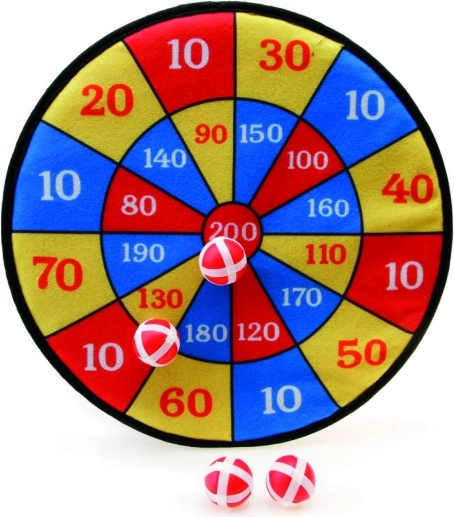 Sørg for en sjov og sikker måde at lege på med vores målskive med velcro, som leveres med fire farvede kugler. Et fremragende valg for både børn og voksne.