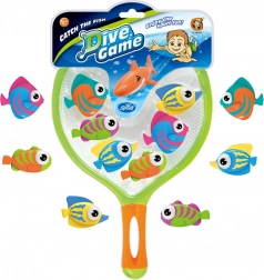 Sættet med dykkerfisk og et praktisk fangstnet er et ideelt valg til leg i badekarret, poolen eller på stranden. Det indeholder flere farverige fisk, som kan dykke og bevæge sig under vand, hvilket giver masser af sjov og eventyr. Børn kan fange fiskene med nettet, hvilket hjælper med at udvikle deres koordineringsevner og motorik.