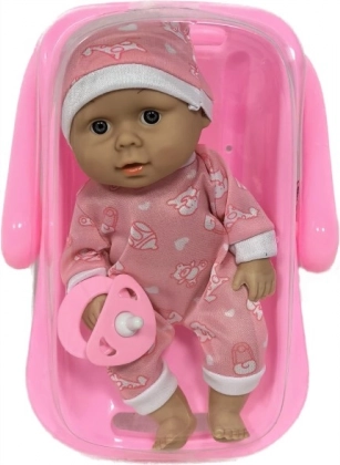 Opdag en yndig dukkebaby med bæreslynge i et sødt lyserødt outfit, perfekt til kreativ leg. Vælg den variant, der bedst passer til jeres ønsker og bringer glæde til dit barn. Opfindsomt legetøj til små forældre.