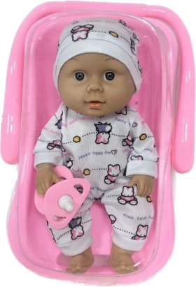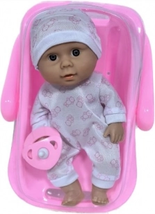 Denne smukke dukkebaby med bæreslynge er designet til at styrke fantasien og kreativ leg. Med sit detaljerede outfit og søde hue bliver den en favoritledsager for dit barn. Fremstillet af sikre og kvalitetsmaterialer, nem at rengøre og vedligeholde.