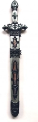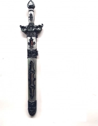 Vi præsenterer et kvalitetsriddersværd, der ikke må mangle i udstyret hos nogen lille ridder. Det robuste og detaljerede design gør det til et fantastisk tilbehør til rolleleg og historiske kostumer. Det kan også fungere som et unikt samlerobjekt takket være sin håndværksmæssige kvalitet og æstetiske værdi.
