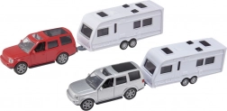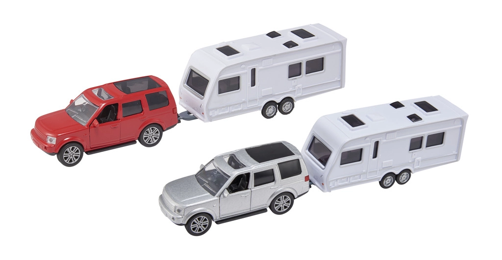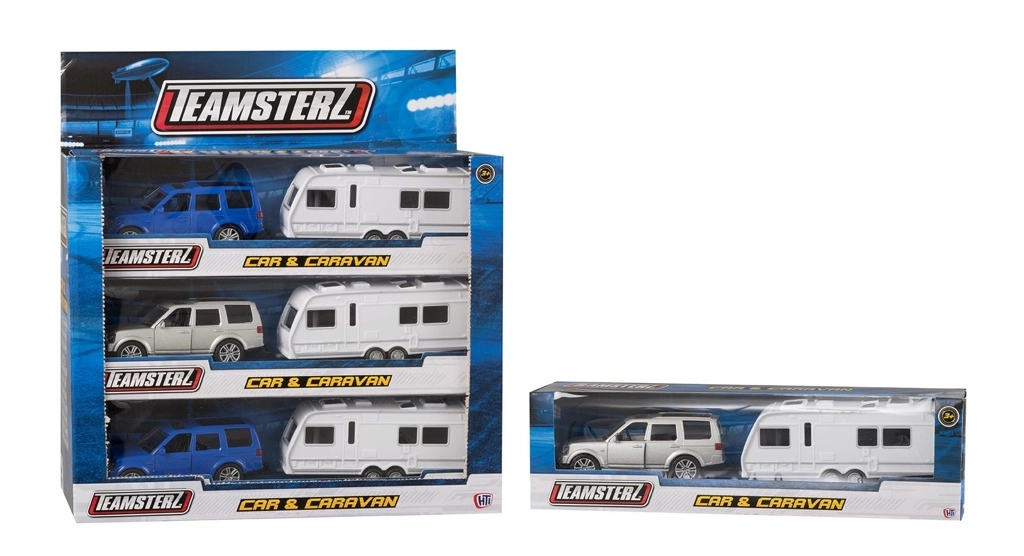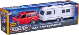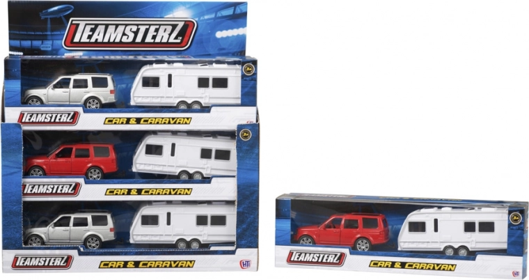 Med Teamsterz børnesættet bil og campingvogn kan dine børn nyde eventyrlig leg fyldt med fantasi. Sættet indeholder detaljerede modeller af en SUV og en campingvogn, fremstillet af holdbar plast. Bilen har åbne døre, hvilket giver endnu mere sjov og muliggør interaktiv leg.