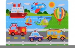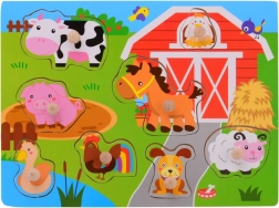Opdag sjove og lærende træpuslespil med knopper til de allermindste. Tre motiver – i vandet, på gården og transport – støtter finmotorik, logisk tænkning og genkendelse af former. Hver brik har en praktisk knop for nem håndtering, og puslespillets mål 30 × 22 cm passer perfekt til små børnehænder.