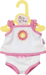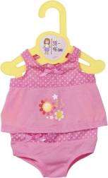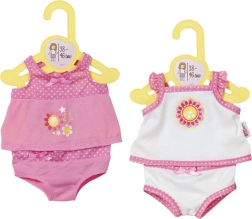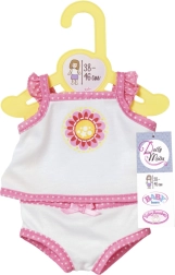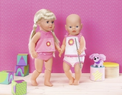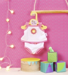 Den praktiske udformning med elastiske kanter sikrer behagelig brug og god holdbarhed i daglig leg. Sættet indeholder et matchende undertrøje- og trussesæt, som kan kombineres med andre dukkeklæder.