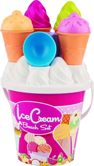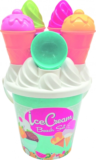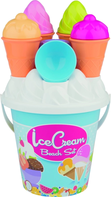 Mød dette farverige sæt til sandet med ismotiv, der bringer børn glæde og understøtter deres kreative leg. Ideel til leg på stranden og i parken, dette sæt er lavet af kvalitetsplast og inkluderer: