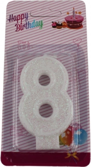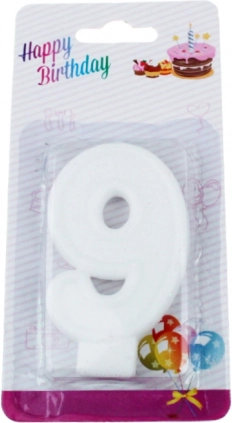 Det elegante fødselsdagslys formet som tallet 9 med diskret glimmer er det perfekte valg til det særlige øjeblik, hvor ønsket pustes ud. Takket være det rene hvide udtryk og glimmeret passer det til mange kagestile og dekorationer.