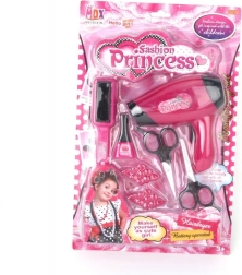 Indholdet omfatter sikre plastredskaber som føntørrer, krøllejern, kam, hårspænder og dekorative accessories. Takket være det lette design er de nemme at håndtere og perfekte til at styrke finmotorikken.