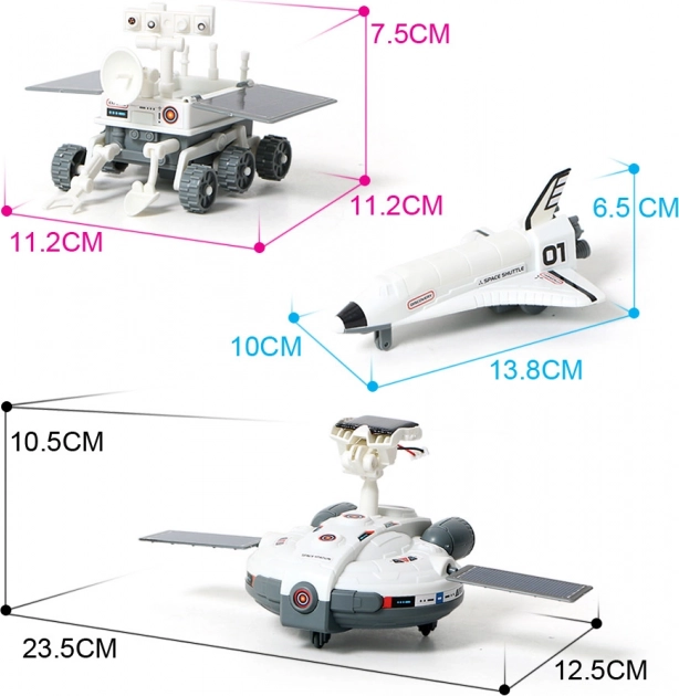 - 3 modeller i 1 – rumfærge, månekøretøj, rumstation.