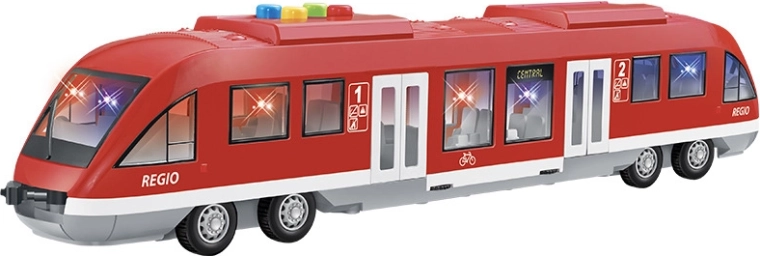 Træd ind i togenes verden med dette detaljerede, interaktive tog. Med dets svinghjul kan du nemt styre bevægelsen og skabe realistiske køreoplevelser. Skub blot til, og toget kører jævnt afsted. Takket være lydeffekterne hører du autentiske stationsudkald, for eksempel: