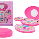 Makeup-sæt til børn med spejl vil begejstre enhver lille modeprinsesse. Det indeholder øjenskygger, lipgloss og et praktisk spejl, alt samlet i en elegant oval æske.