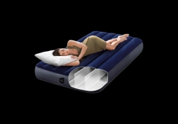 Praktisk oppustelig madras til én person i målene 191 × 99 × 25 cm fra INTEX er ideel til hjemmebrug og rejser. Holdbart PVC med fløjlsagtig velour på overfladen sikrer en behagelig følelse og bedre greb for lagenet, mens Dura‑Beam Fiber‑teknologi giver stabil støtte og lang levetid. En reparationslap medfølger.