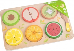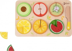 Sæt af træfrugt til skæring er ideelt for små børn, der elsker at lege kok. Dette pædagogiske sæt indeholder 23 forskellige elementer inklusive et bræt, kniv og deles frugt, hvilket giver uendelige muligheder for kreativ leg og imaginære scenarier.