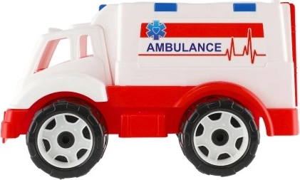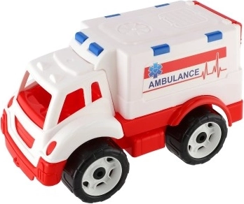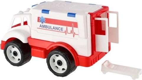 En realistisk ambulancelegetøjsbil til små redningsfolk, der støtter fantasi, empati og finmotorik. Den har åbne døre, en aftagelig båre og store hjul for jævn kørsel på forskellige underlag. Det holdbare design i kvalitetsplast er ideelt til børn fra 2 år.