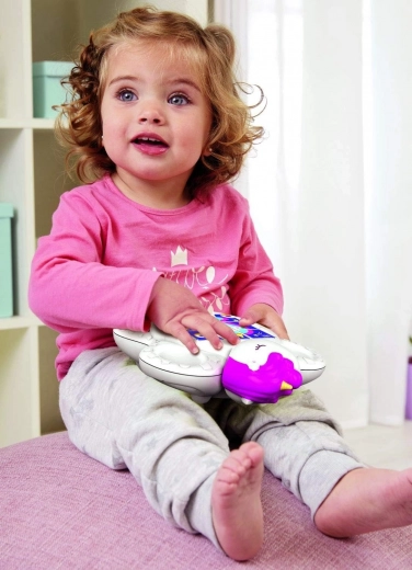 Det interaktive skydepuslespil formet som en sød enhjørning kombinerer kreativ billedsamling med legende lyde. Børn skubber farverige fliser og samler billeder, mens lydeffekter og en melodi motiverer. Legetøjet understøtter hånd–øje-koordination, koncentration og de første logiske opgaver.
