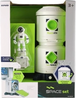 På stationens tag er der en rumline, som gør det muligt for kosmonauten sikkert at tage på en “rumvandring”. Sættet indeholder også en parkeringsplads til et svævefartøj og mulighed for at “oplade” en rum-bil (fra kompatible sæt). Alt er klar til leg med det samme – 2× AA-batterier er inkluderet.