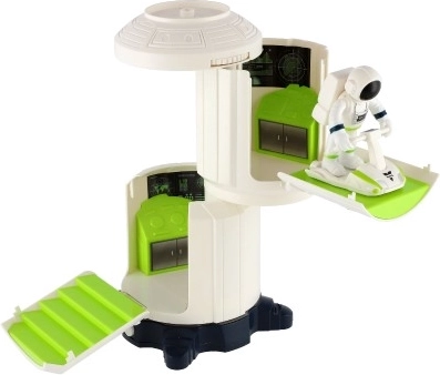 Oplev eventyr i rummet med denne rumstation med lys og lyde, der byder på to kontrolrum, bevægelige elementer og en astronaut til actionleg. Takket være svævetur i rummet med line, parkeringsplads til svævefartøj og mulighed for at “oplade” et køretøj fra et andet sæt får børn timevis af kreativ leg. 2× AA-batterier medfølger.